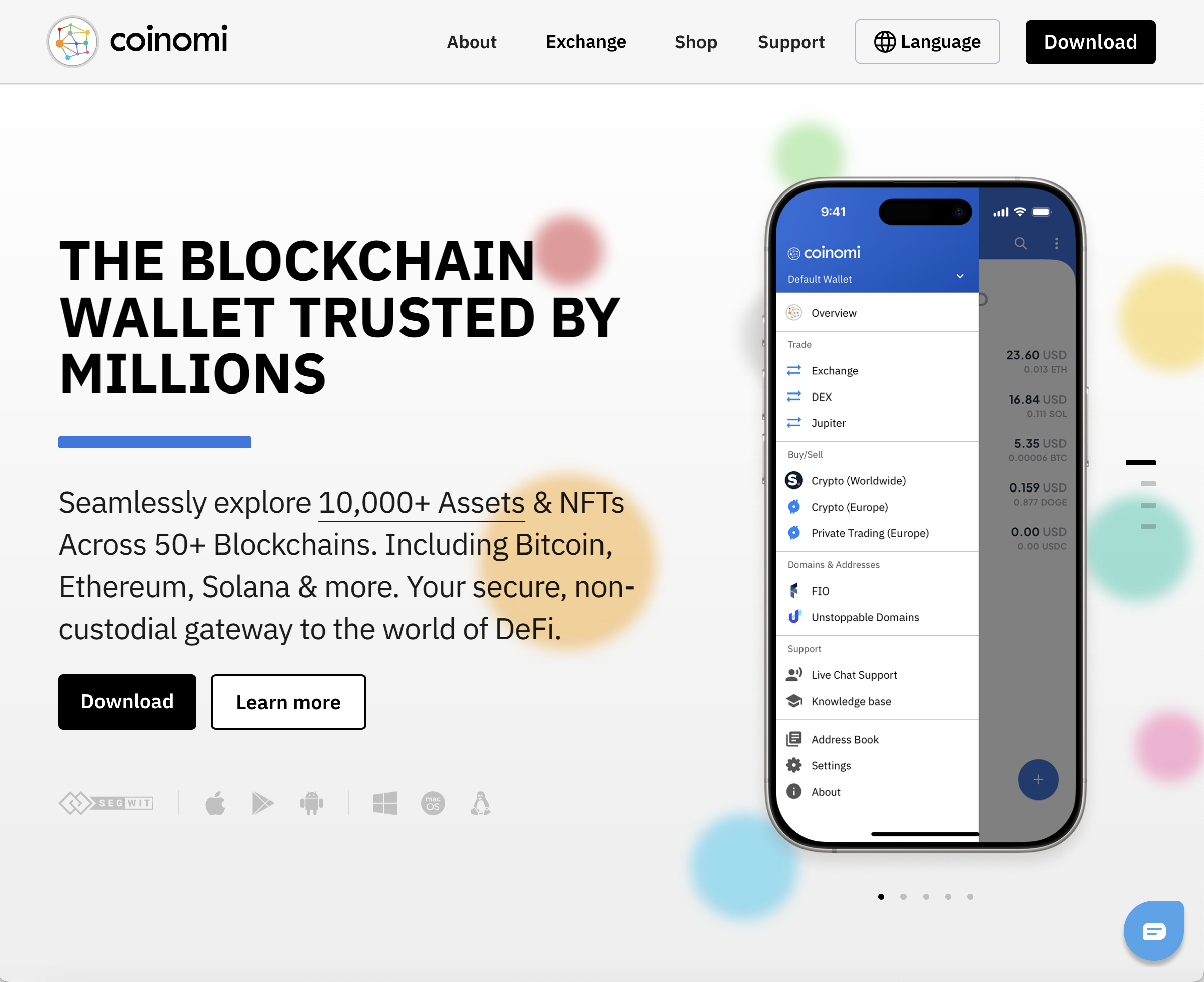 Non-custodial Wallet: Users retain control of private keys and recovery phrases, meaning Coinomi cannot access funds directly.