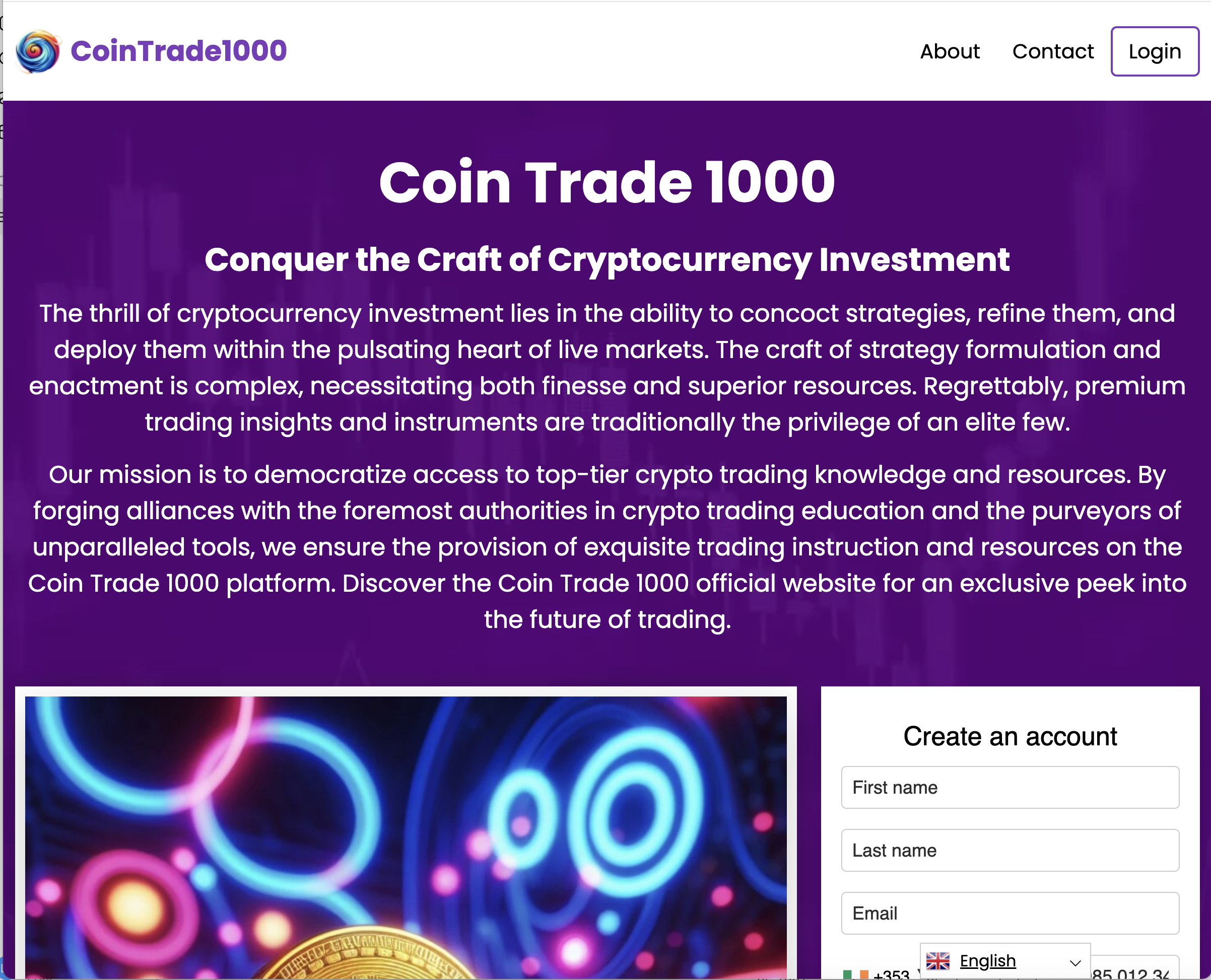 Cointrade1000 is an online platform that claims to offer trading and investment services across multiple digital assets, including Bitcoin, Ethereum, and other popular cryptocurrencies. The website presents itself as a secure environment where users can buy, sell, and trade crypto with ease while earning consistent profits.