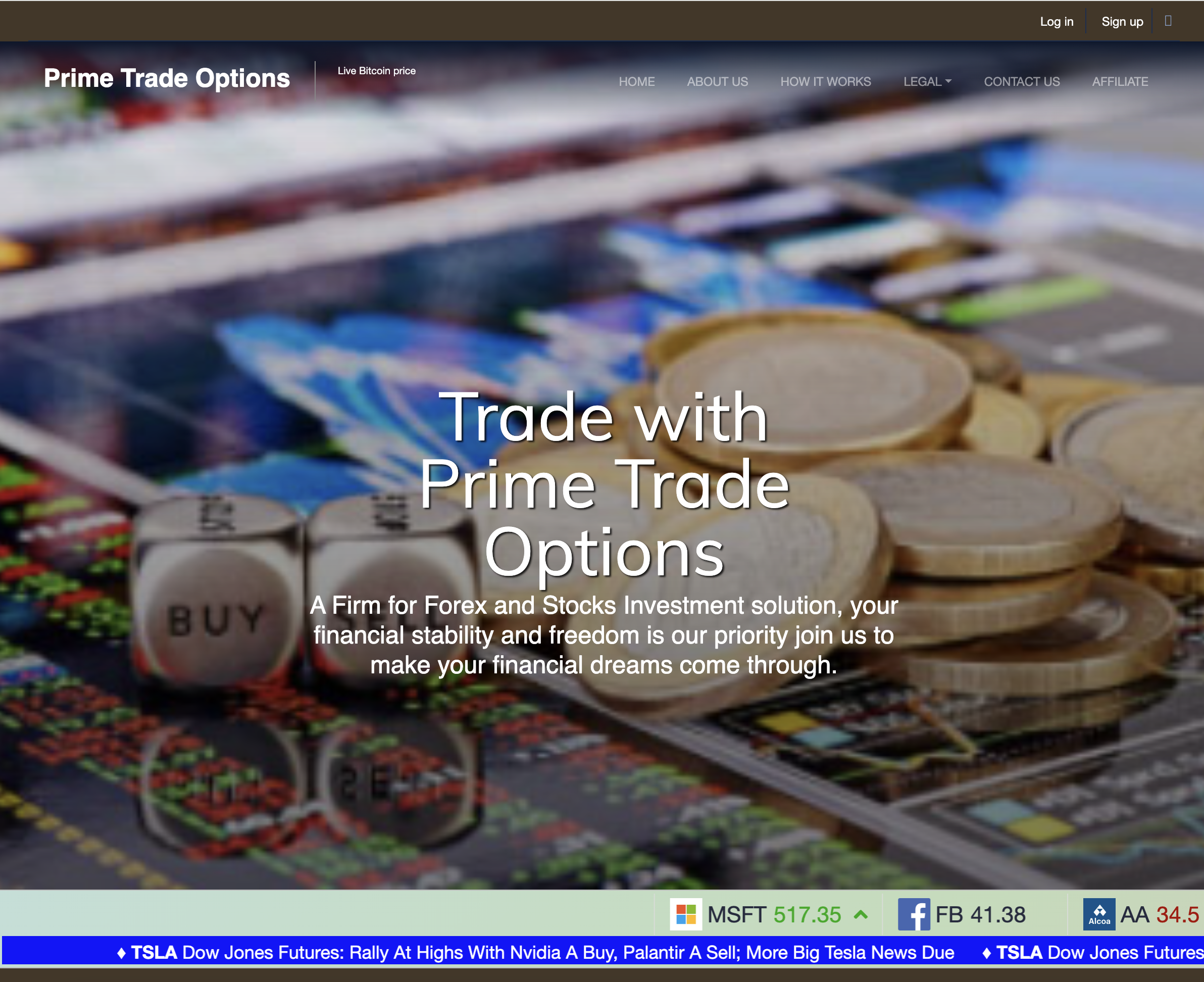Primetradeoptions.com presents itself as a professional trading service offering: